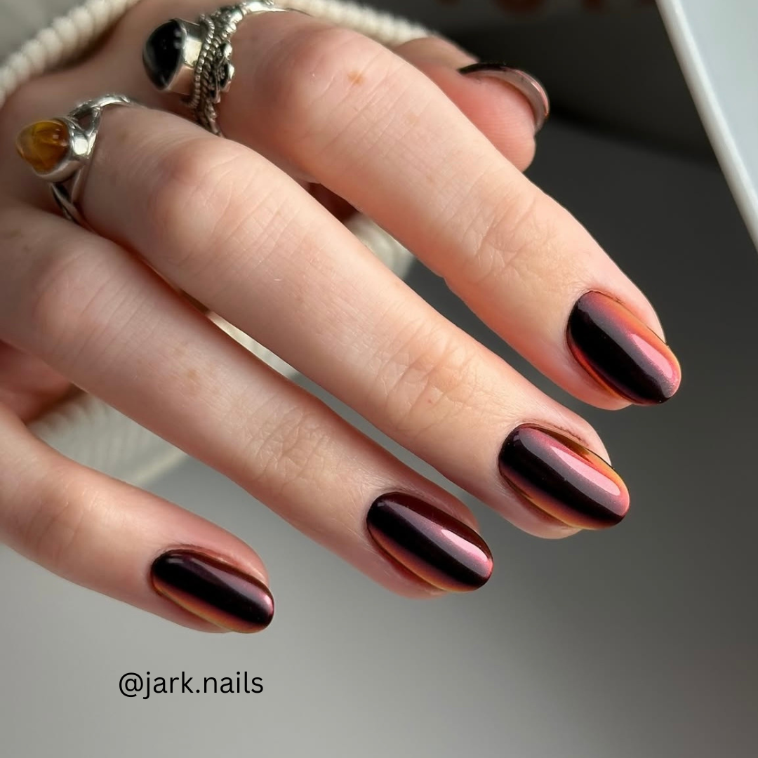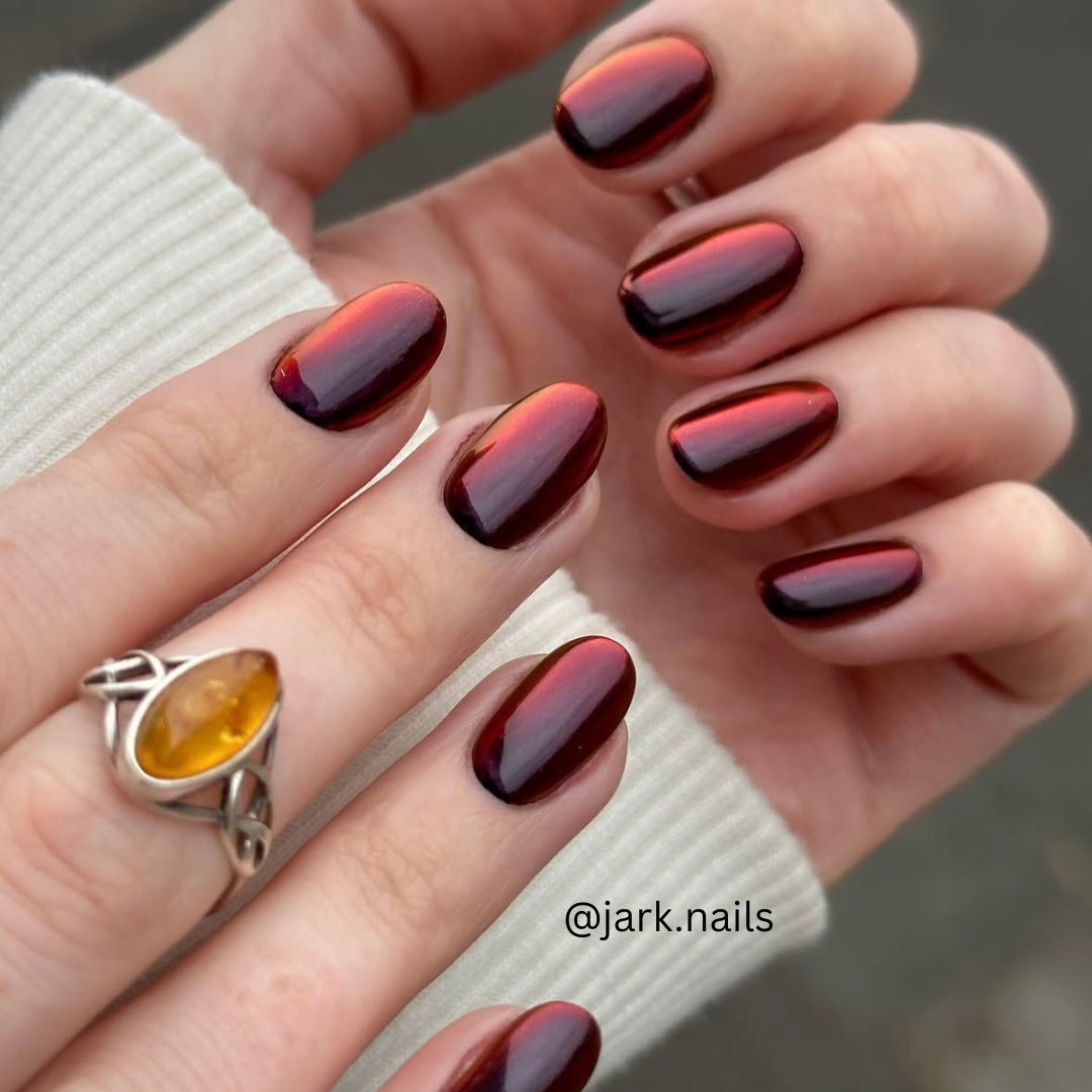 For best colour results chrome over black with a good no wipe top coat for chroming (I like to use Akzentz Shine On as it's my favourite for chrome nails)